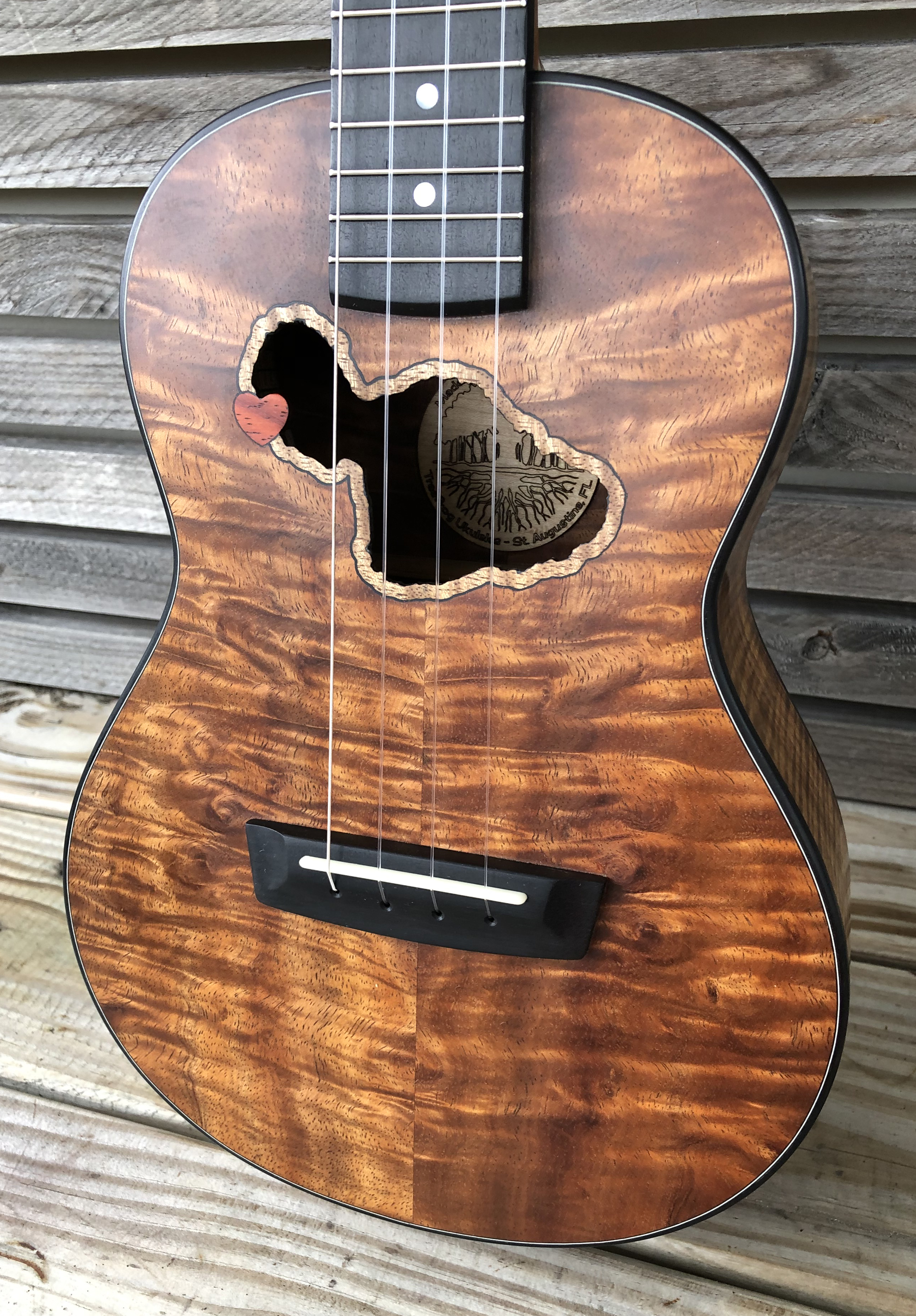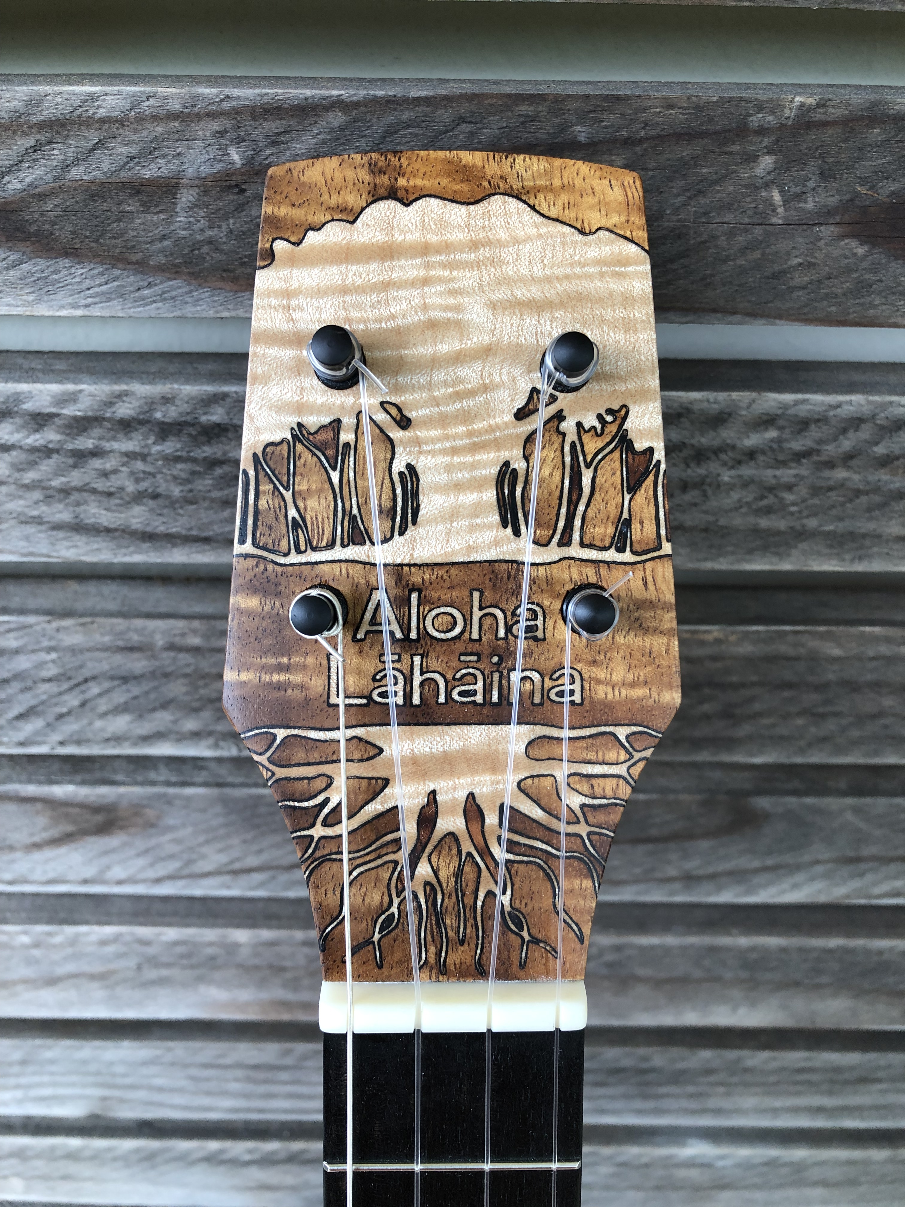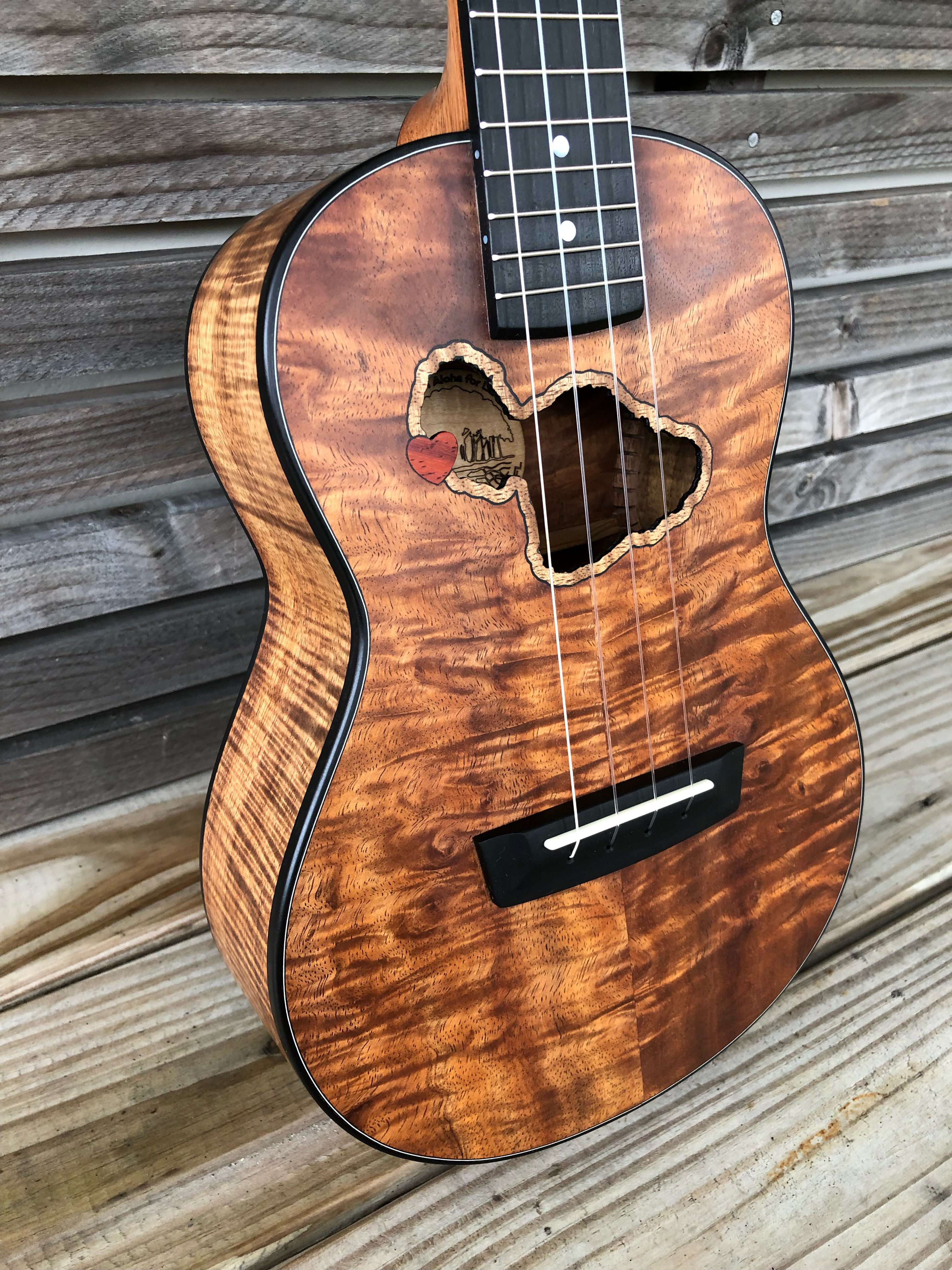 This tenor ‘ukulele, made from beautiful quilted Koa, is meant to try to bring a little joy to the lives of some devastated by the August 8 firestorm that destroyed the wonderful town of Lahaiana, on the island of Maui.